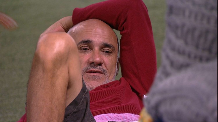 Após formação do nono Paredão, Ayrton, Ana Clara e Gleici conversam na área externa e o integrante da família Lima critica um brother para as sisters: "Nem na minha cara olhou."