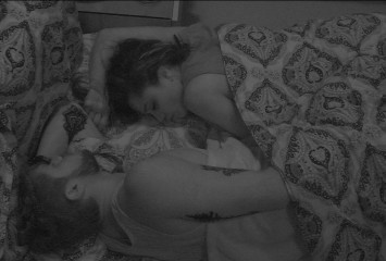 Depois de movimentarem o edredom, Paula e Breno dormem no Bangalô do Líder.